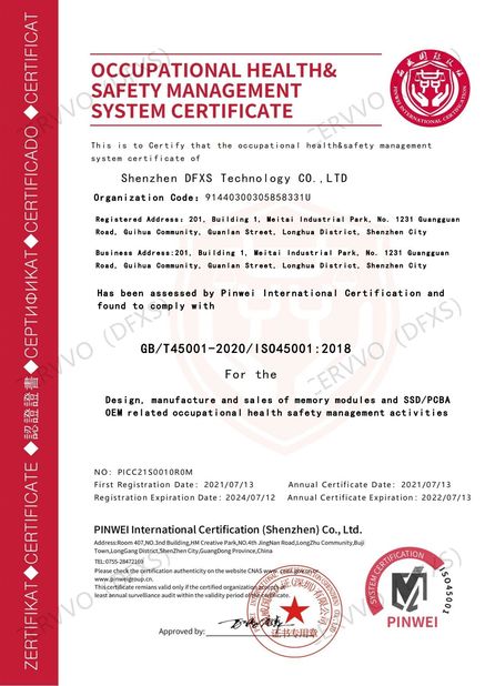 | ব্যাপ্তি / বিন্যাস: | Design, manufacture and sales of memory modules and ssd/pcba oem related occupational health safety management activities |